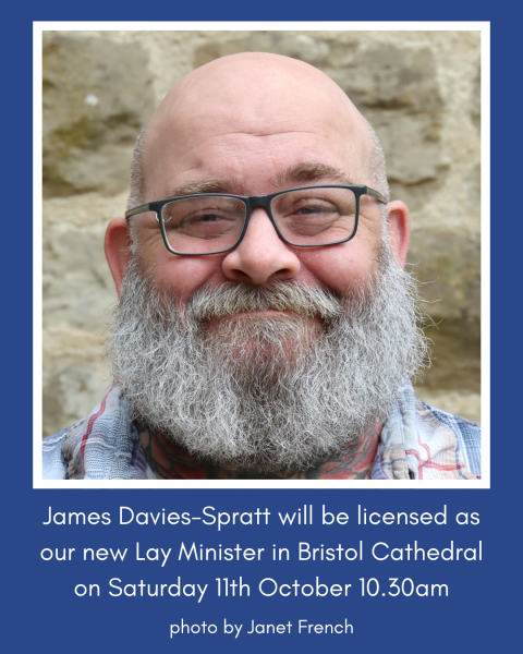We’re delighted that James Davies-Spratt will be licensed as our new Lay Minister at Bristol Cathedral on Saturday 11th October at 10.30am. Please hold James and Alex in your prayers as they begin this important new chapter serving God together.