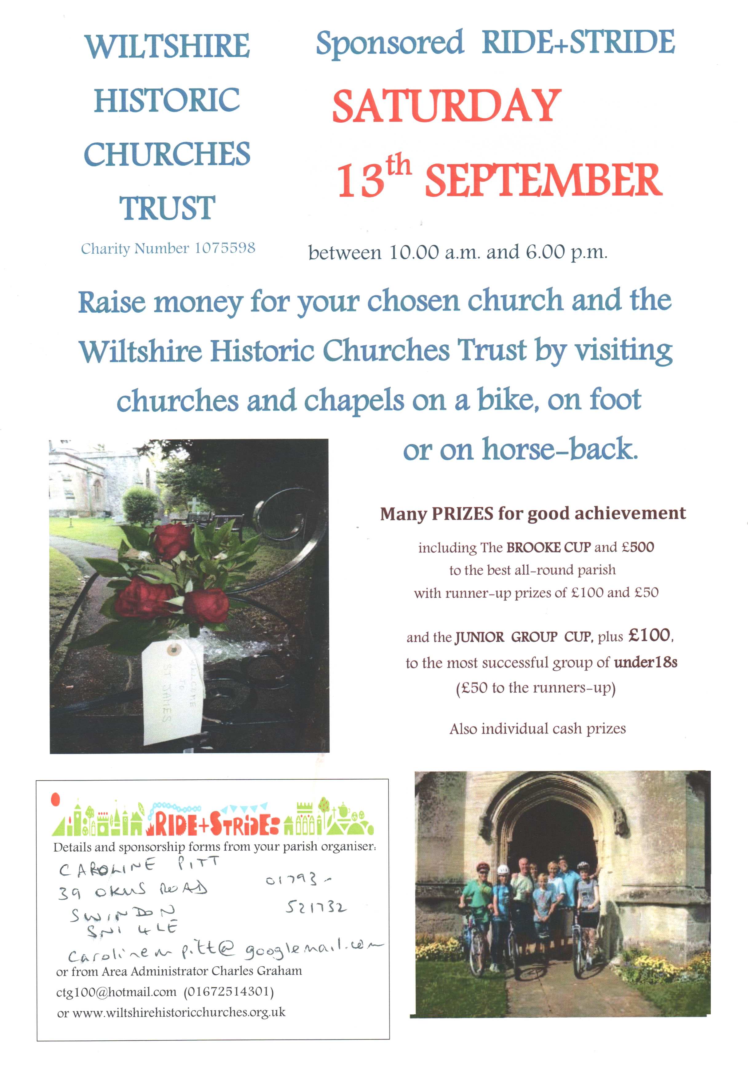 You can download all you need including a list of churches, sponsor sheet and information here – Church List Ride & Stride Pack