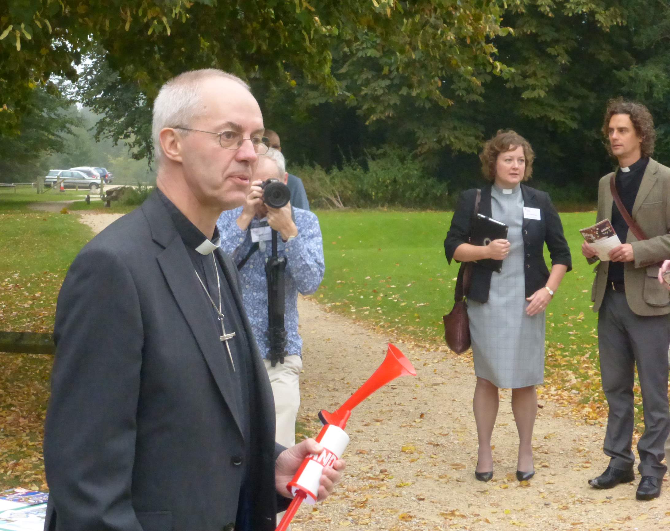 Six dedicated people from Christ Church with St Mary’s got up early on Saturday 13 September and cycled to Lydiard Tregoze. At 10am The Most Reverend and Right Honourable Justin Welby, Archbishop of Canterbury, gave a blessing to all those involved. He then sounded a klaxon to launch the 30th Ride and Stride in aid of Historic Wiltshire Churches. About 60 cyclists and walkers set off. During the day Stephen Grosvenor, Elaine Guilding, Charles Russell, Caroline and Daniel Pitt and Keith Tredget cycled between 20-30 miles each and made over 100 church visits between them. Their sponsorship so far, amounts to £500 and rising; half of the money comes back to our parish.